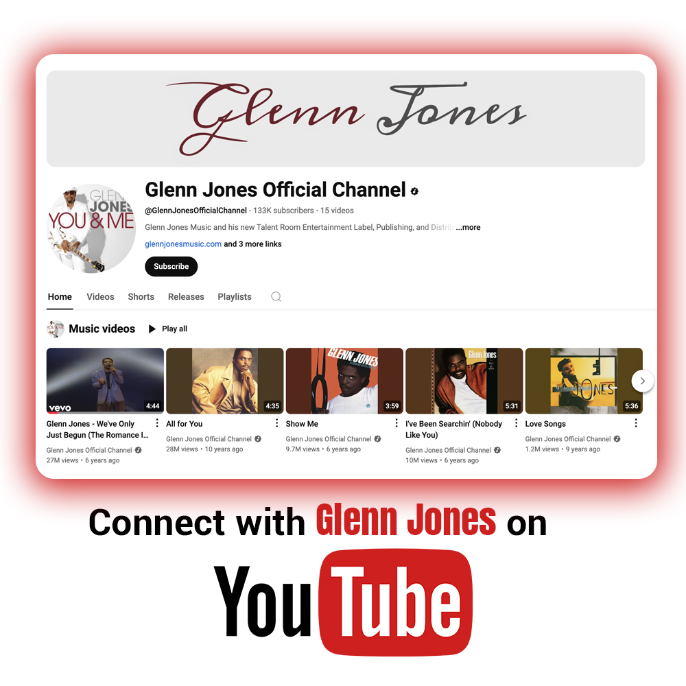 Besides being one of the music industry’s most extraordinary vocalist, Grammy Nominated Recording Producer, Artist and Actor, GLENN JONES is at the top of the list as a love song balladeer capturing audiences’ hearts with his own unique, style and voice. Mr. Jones is also underway with the launch of his new company Talent Room Entertainment and Publishing, Inc. which will release “Love By Design EP.” his next musical project.